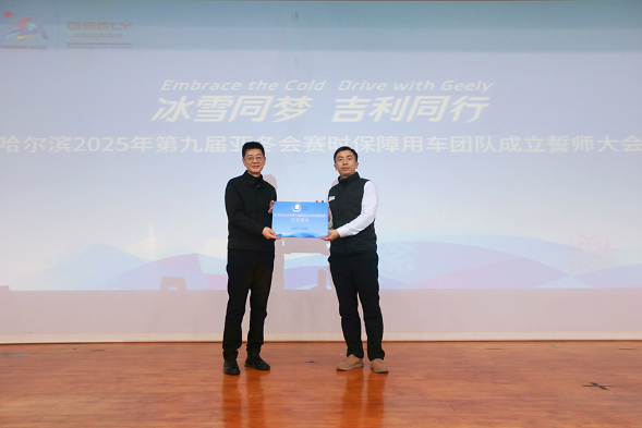 在莊重而熱烈的氛圍中,現(xiàn)場隆重舉行了乘用車保障團(tuán)隊(duì)授旗儀式。駕駛員們整齊列隊(duì),許下了鄭重的承諾:“精準(zhǔn)調(diào)度,安全駕駛,嚴(yán)格守時(shí),真情服務(wù)。高效整備,細(xì)致維護(hù),保障有力,穩(wěn)健運(yùn)行。全力實(shí)現(xiàn):零投訴、零延誤、零事故。用真情護(hù)航,用智慧開道,冰雪同夢,吉利同行?!?/p>