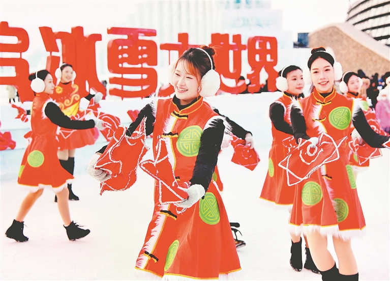 2日,農(nóng)歷正月初五。哈爾濱冰雪大世界許多游客在參觀游玩,走在美麗的冰雕雪塑間,如同進(jìn)入一個(gè)童話世界。春節(jié)期間,人們不僅可以觀賞到美輪美奐的冰雪景觀,還可以看到精彩的舞獅、舞蹈表演,感受濃濃的節(jié)日氛圍。