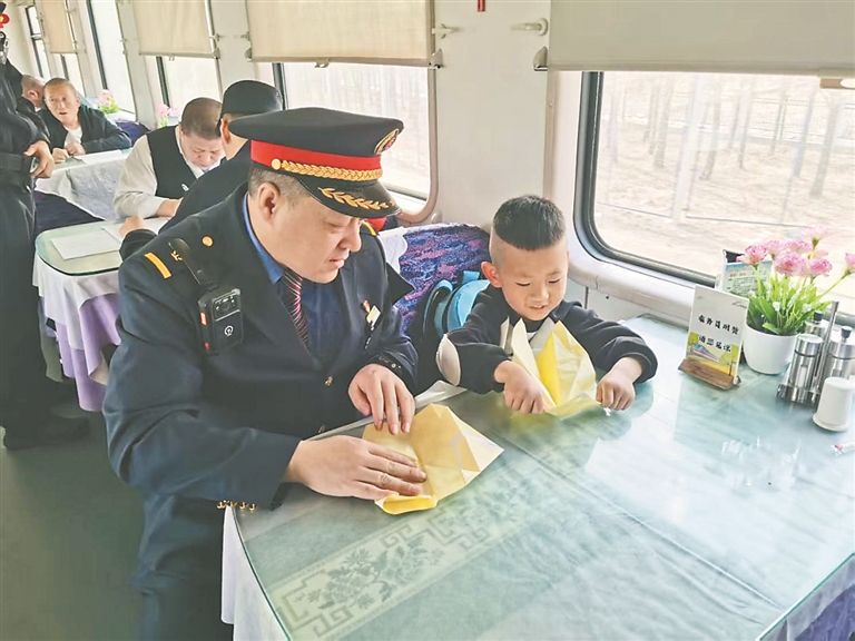 本報(bào)訊(張蔚萌 王夢(mèng) 記者 王迪)近日,由鄭州開(kāi)往海拉爾的K927次列車從昌圖站駛出后,列車長(zhǎng)孫志強(qiáng)接到12306轉(zhuǎn)發(fā)的緊急尋人求助工單。經(jīng)過(guò)與客服溝通了解后得知,旅客劉玲玲帶6歲兒子劉俊澤從沈陽(yáng)北站乘車至昌圖站,因下車時(shí)忙于整理行李,將座位上熟睡的孩子遺落在列車上。列車長(zhǎng)孫志強(qiáng)通過(guò)對(duì)講機(jī)立即組織各節(jié)車廂列車員尋找孩子,確定孩子位置后迅速趕到現(xiàn)場(chǎng)。為了緩解孩子的緊張情緒,他化身“臨時(shí)爸爸”,將孩子帶到了餐車,不僅準(zhǔn)備了一些自帶的小零食,還陪孩子一起折紙飛機(jī)。當(dāng)列車??块L(zhǎng)春站后,孫志強(qiáng)按照其母親劉玲玲的要求,將孩子安全移交給長(zhǎng)春站工作人員,等待其家屬前來(lái)接領(lǐng)。