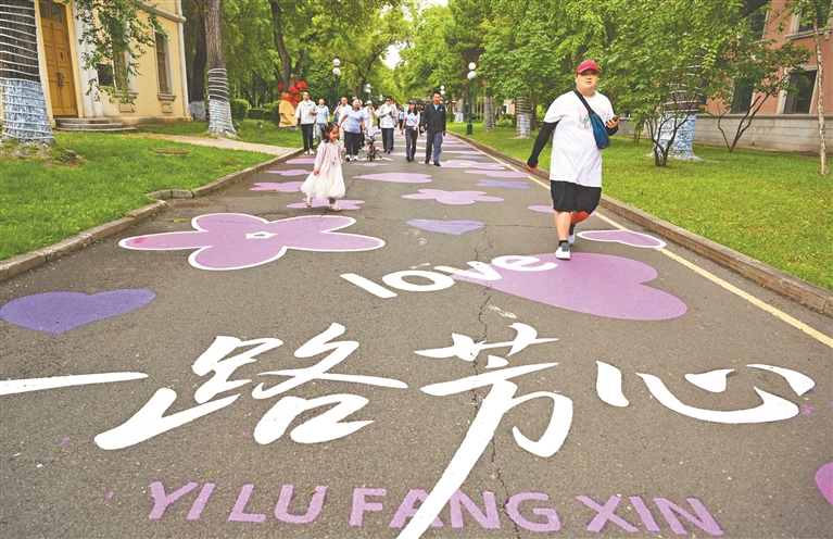 近日,哈爾濱市太陽島景區(qū)臨江街上新增添的彩繪“一路芳心”景觀成為新的網(wǎng)紅打卡地,多彩的“愛心”和花朵交匯組成,猶如太陽島上的“莫奈花園”,吸引大批市民和游客們相約太陽島,愛上哈爾濱。