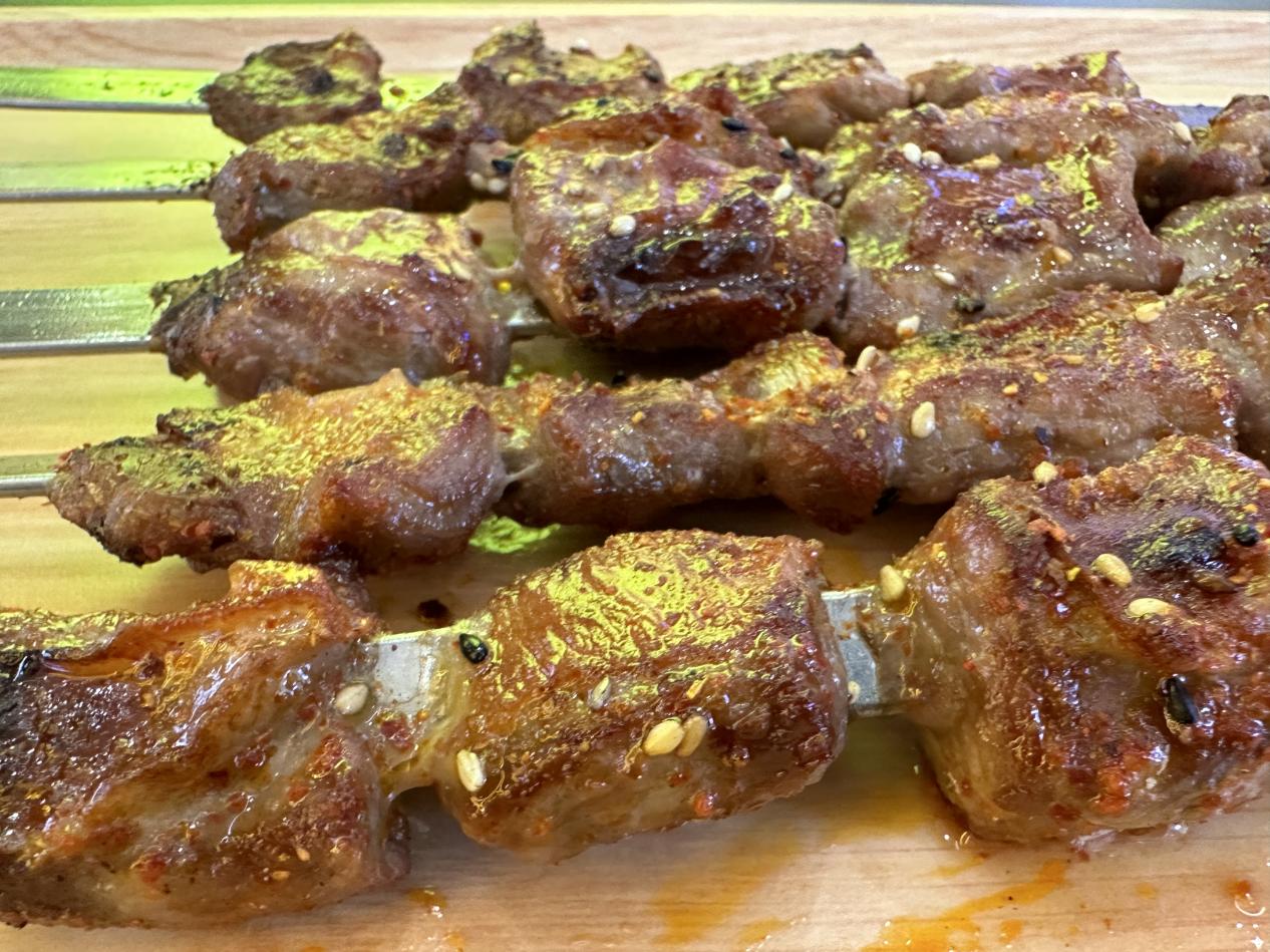 暮色降臨,綏化市青岡縣街頭的炭不二燒烤店內(nèi)早已座無虛席,滋滋冒油的大油邊在炭火上翻滾,金黃油亮的肉串被烤得滋滋作響,食客們大快朵頤。從明水一店,開到青岡二店,一路飄香。店主王安國穿梭在人群中,臉上洋溢著喜悅:“每天400多串根本不夠賣!試營業(yè)以來,店里天天爆滿,老顧客帶著新客人,都沖著這口大油邊來的。”說話間,一位熟客又推門而入,她笑著對服務(wù)員說:“老樣子,先來十串大油邊!嘗過一次就忘不了這脆皮爆汁的口感,太幸福了!”回頭客絡(luò)繹不絕。