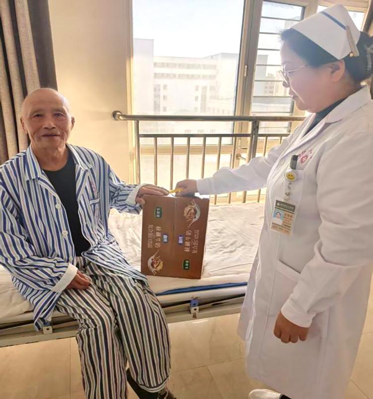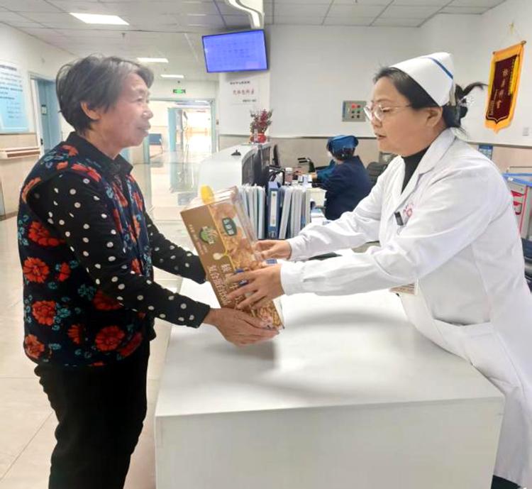 禮品雖小,情意濃重。開展活動期間,醫(yī)護人員們帶著精心準(zhǔn)備的小禮品,走進每一位60歲以上老年患者的病房。這些小禮品雖然價格并不昂貴,但卻飽含著對患者的深深祝福。柔軟舒適的保暖襪,為患者在漸冷的霜降時節(jié)增添一份溫暖;營養(yǎng)豐富的滋補品,助力患者增強身體抵抗力;寓意吉祥的平安符,寄托著對患者早日康復(fù)的美好期許。當(dāng)醫(yī)護人員將一份份小禮品送到患者手中時,患者們的臉上都洋溢著驚喜與感動的笑容,紛紛對科室的貼心關(guān)懷表示感謝?;颊邉⒁碳拥卣f:“在這個特殊的節(jié)日里,收到你們送的禮物,心里特別溫暖”。