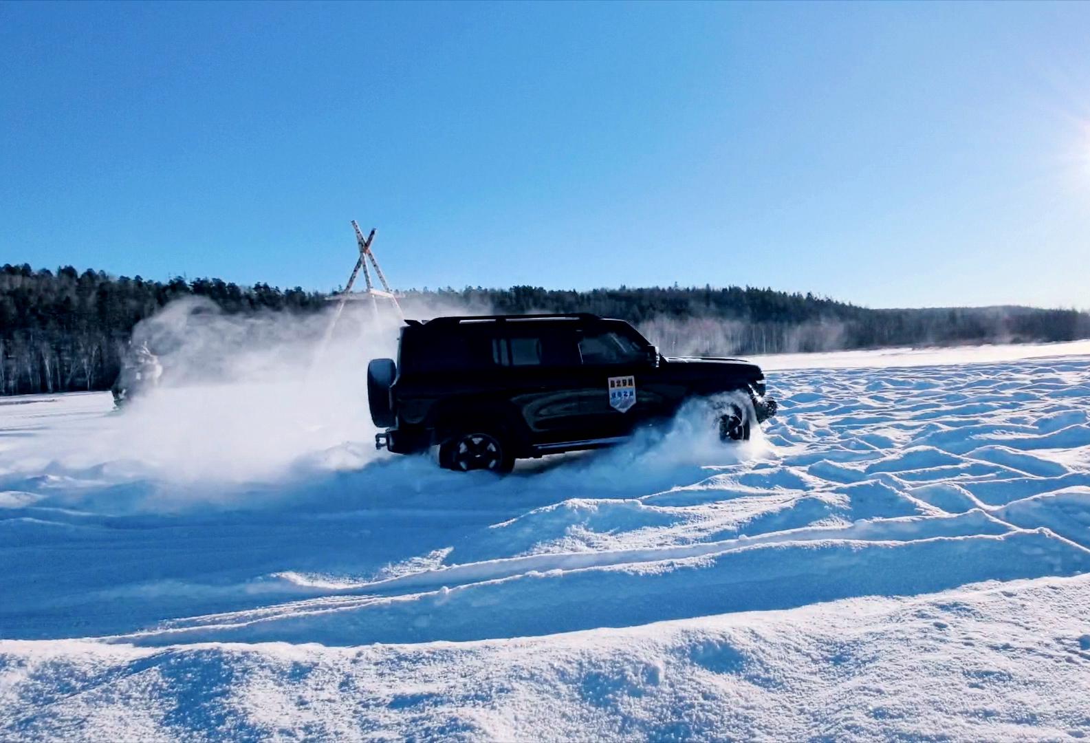 越野車輛在額木爾河流域冰面上馳騁(王力 攝)
