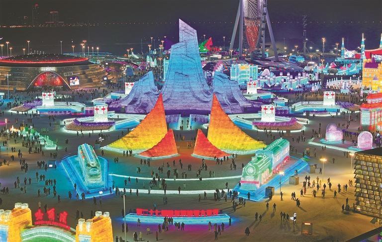 哈爾濱冰雪大世界夜景。本報(bào)記者 張澍攝