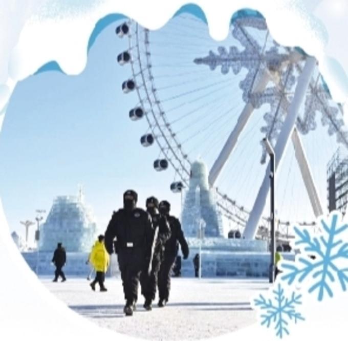 新年伊始,黑龍江省哈爾濱市氣溫降至零下20攝氏度,“哈氣成冰”在這里更加具象化了。在冰雪大世界園區(qū)內,各種各樣的冰雕建筑云集,氣溫比市區(qū)更低。“雪花摩天輪”上流動著光暈,數萬名游客的歡呼聲在冰雕叢林中回蕩。涌動的人潮中,一抹抹藏藍身影用默默付出,守護著這份冬日里的熱烈與祥和。