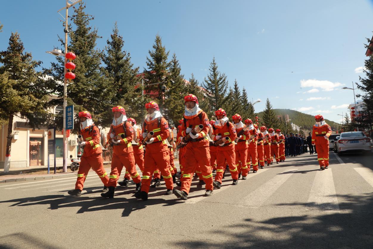 阿木爾林業(yè)局專業(yè)撲火隊員方隊徒步宣傳“五·六”森林火災的慘痛教訓,提醒居民身在林區(qū)防火第一(王力 攝)