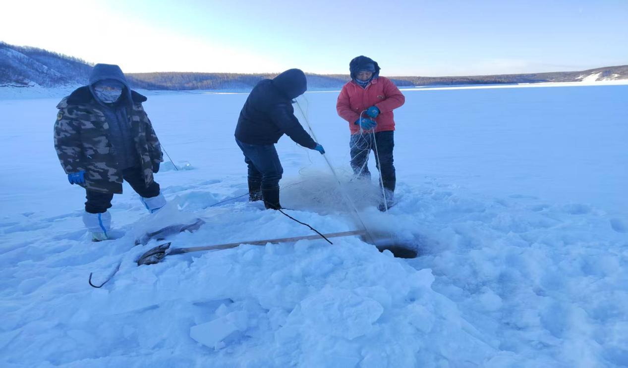 為確保首次冬捕成功,組建捕撈團隊,邀請經(jīng)驗豐富的漁工指導(dǎo),從漁網(wǎng)鋪設(shè)、冰面鑿洞到捕撈作業(yè),每一個環(huán)節(jié)都精心部署、規(guī)范操作,最終實現(xiàn)首網(wǎng)豐產(chǎn)的喜人成果。