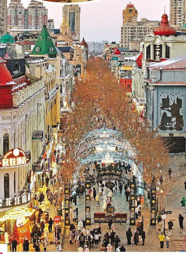 夜幕降臨,哈爾濱市中央大街悄然披上了一襲由光影精心織就的夢幻霓裳。流光溢彩的燈光,細(xì)細(xì)勾勒著獨(dú)特建筑的穹頂輪廓。游客不同方言的贊嘆聲此起彼伏,交織在浪漫的氛圍中,共同奏響一曲迎接新春的歡快樂章。