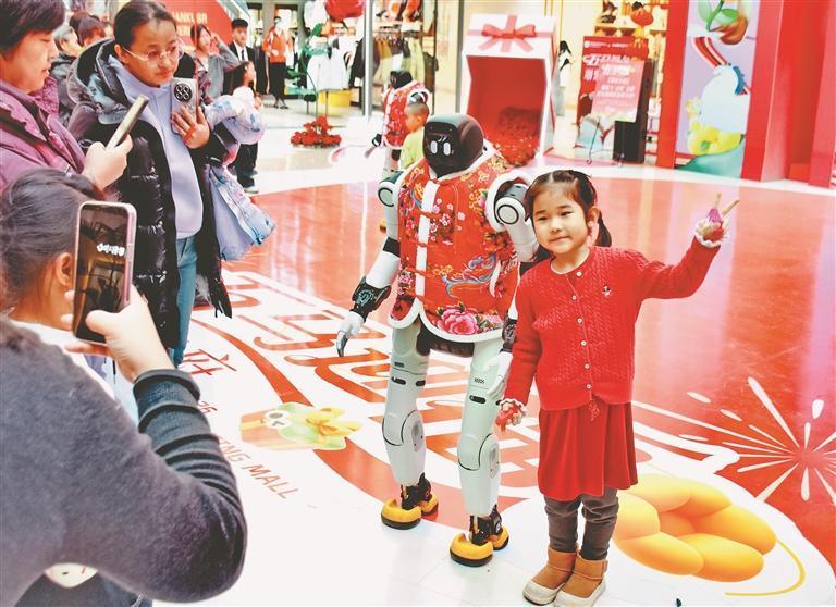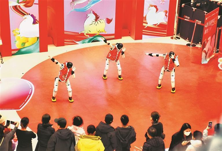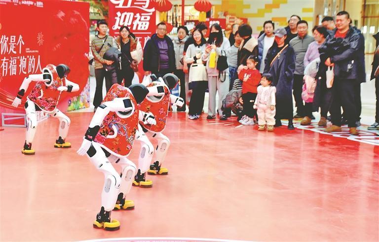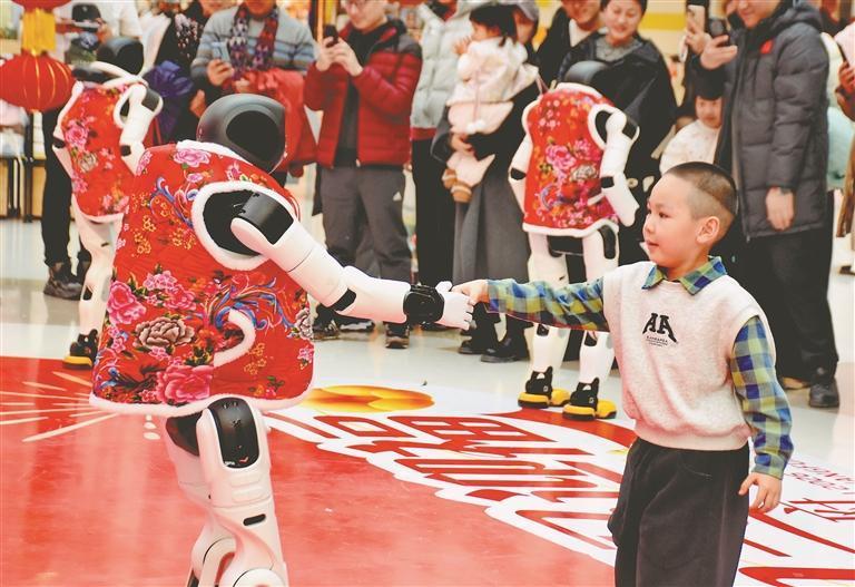 19日,正月初三。哈爾濱市道里區(qū)一家大型商場舉行了機(jī)器人舞蹈表演,吸引許多市民游客駐足觀看。走進(jìn)場地的三個(gè)機(jī)器人身高1.5米左右,穿著紅色棉坎肩,十分喜慶。在音樂伴奏下,它們翩翩起舞,動作整齊劃一。表演結(jié)束后,機(jī)器人走進(jìn)人群,與大家握手、合影、互動。春節(jié)假期,哈爾濱市多家商場都推出了機(jī)器人表演,讓市民游客與最新科技來個(gè)親密接觸。