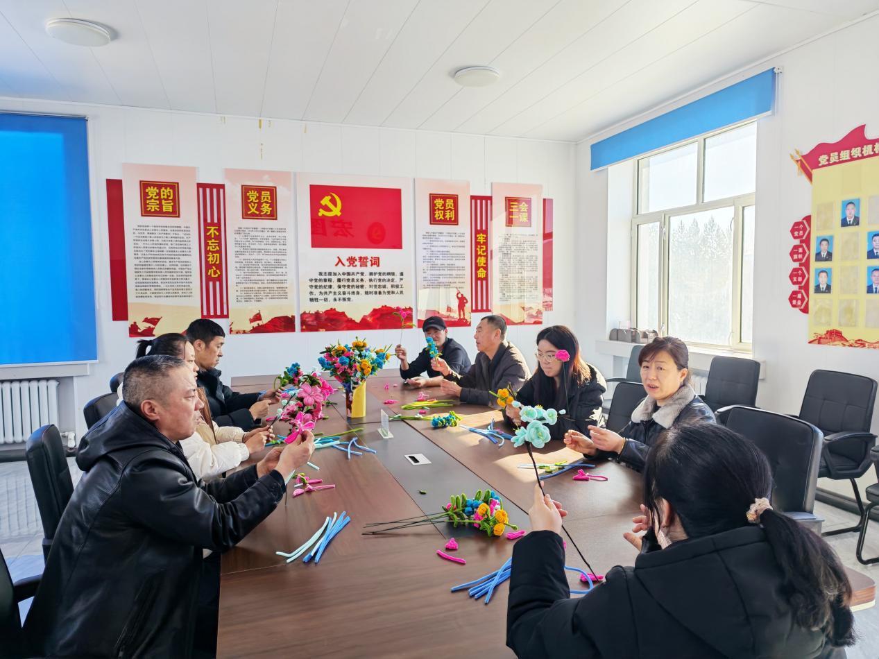 活動現(xiàn)場,大家認真聆聽專業(yè)人員講解野生興安杜鵑、野生藍莓等本土植物保護的相關(guān)知識。隨后,通過觀看教學(xué)視頻系統(tǒng)地學(xué)習(xí)扭扭棒基礎(chǔ)造型技巧,在動手實踐中加深對野生植物的保護與認知。實操環(huán)節(jié),職工們圍坐一堂、相互切磋,指尖翻飛間,一根根彩色扭扭棒被巧妙彎折、組合,化作栩栩如生的野生興安杜鵑、飽滿圓潤的藍莓果束等精美手工作品。作品展示環(huán)節(jié),大家踴躍分享創(chuàng)作靈感、交流制作心得,集體合影定格溫馨瞬間,現(xiàn)場氛圍輕松融洽、其樂融融,充分展現(xiàn)出林場職工昂揚向上、心靈手巧的良好精神風貌。